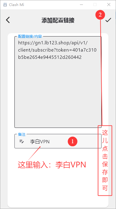 - 在URL栏粘贴您从李白复制的订阅链接,然后点击“确定”保存。