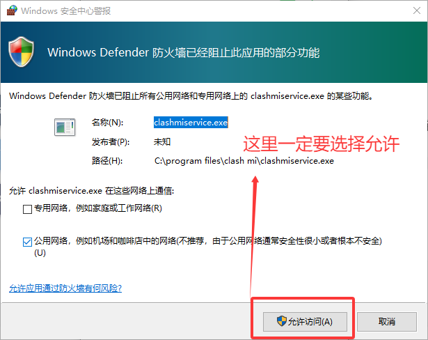 - 如果弹出访问提示,一定要选择“允许访问”:
